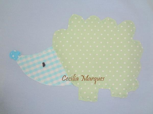 Conjunto de body com mijão (vira pé) em algodão egípcio, aplicação pespontada.