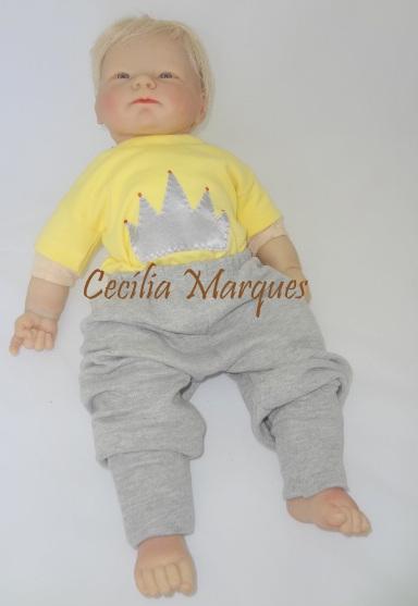 Conjunto de body com mijão (vira pé) em algodão egípcio, aplicação pespontada.