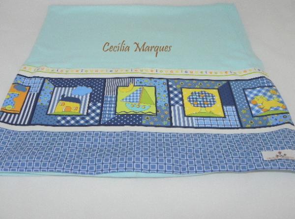 Lençol confeccionado em suedine, os detalhes são em tricoline.